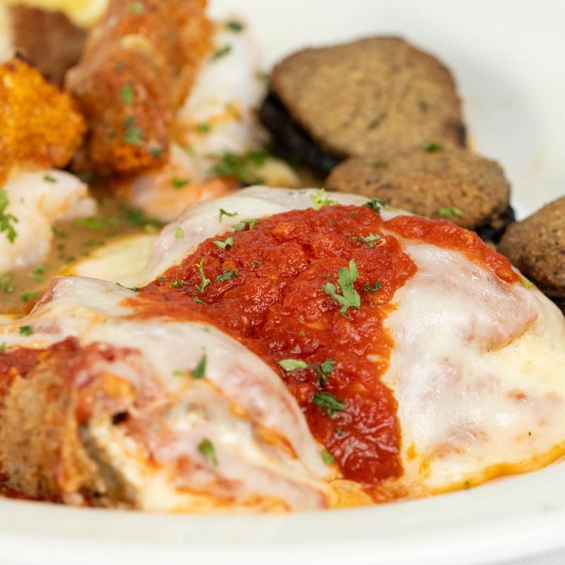 Baked clams, shrimp oreganata, stuffed mushrooms & eggplant rollatini.
